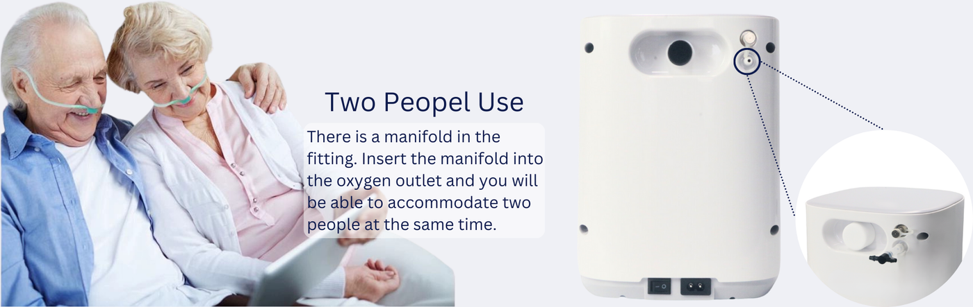 There is a manifold in the fitting. Insert the manifold into the oxygen outlet and you will be able to accommodate two people at the same time.