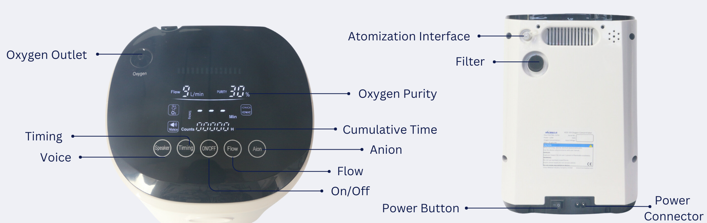 Home Use 1-9L Adjustable Continuous Flow Oxygen Concentrator 2-in-1 With Atomization Function - HOC-03