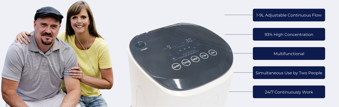The oxygen concentration of HOC-03 varies with the flow rate 1-9L. The maximum concentration is 93%±3%@1L. Meet your different oxygen needs.