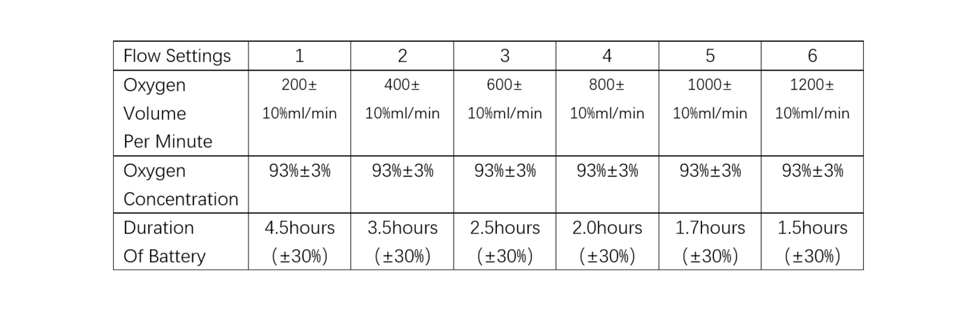 KY-ZY6A provides adjustable pulse dose delivery with settings ranging from 1 to 6. Up to 1.2 liters, equivalent 6 liters.The removable battery duration according to flow settings, up to 4.4 hours.