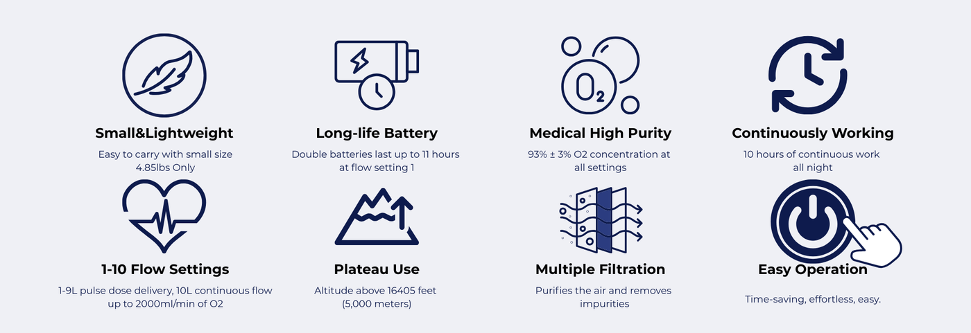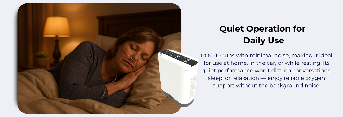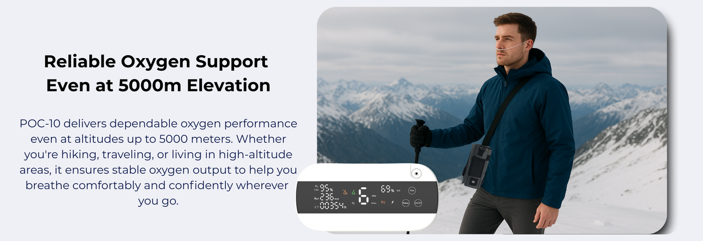 POC-10 provides both pulse and continuous flow modes, covering different oxygen needs throughout the day. It ensures stable oxygen output for users with varying conditions, and its portable design allows use at home or during short outings.
