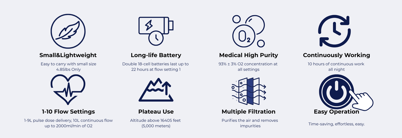 POC-10 provides both pulse and continuous flow modes, covering different oxygen needs throughout the day. It ensures stable oxygen output for users with varying conditions, and its portable design allows use at home or during short outings.